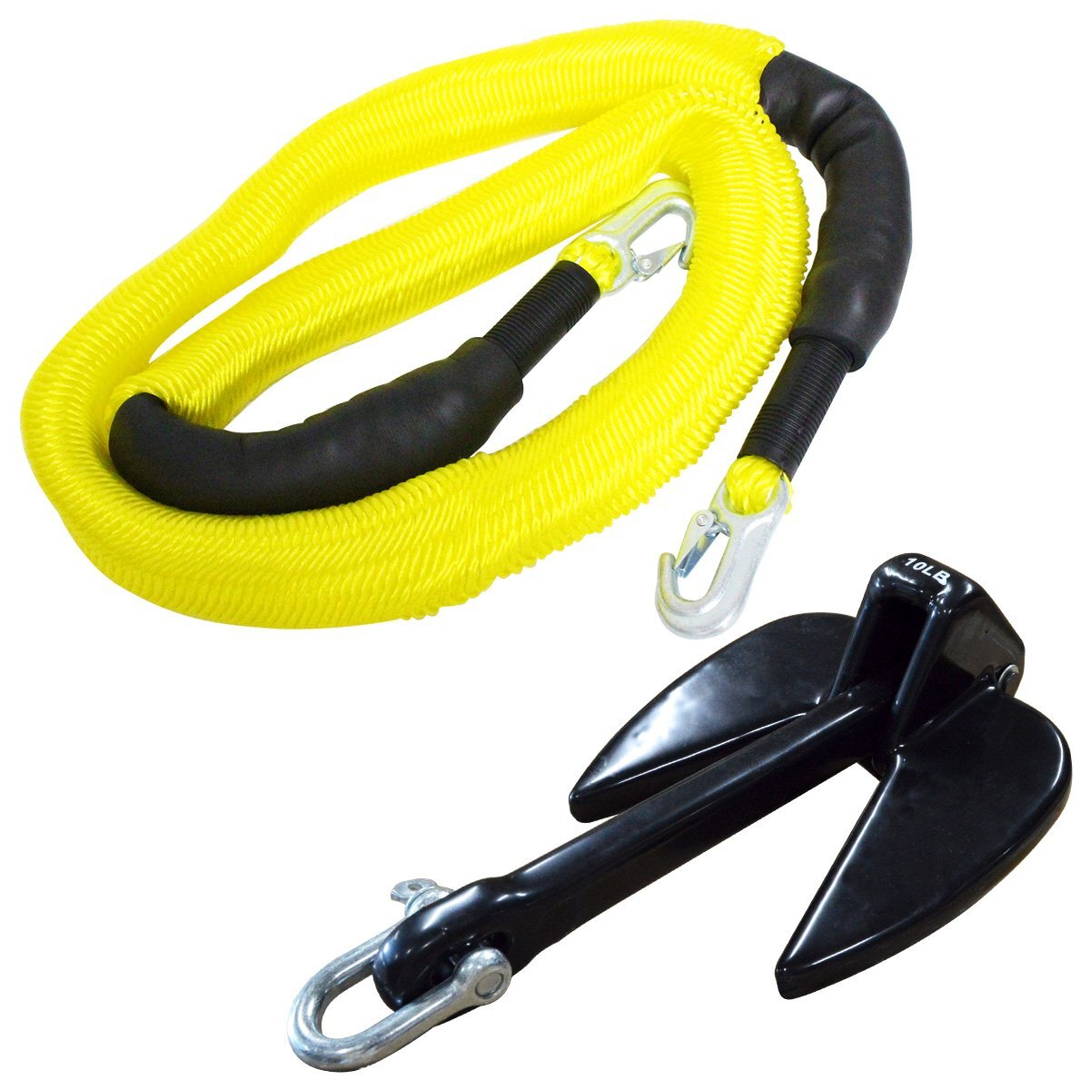 【新品即納】『伸縮ロープ/アンカーセット』爪型 アンカー 10LBS 4.5kg 黒 ブラック 6M フロート のびのび アンカー ロープ 黄色