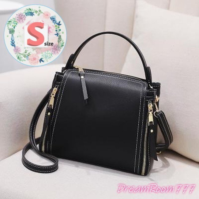 classic デザインステッチ レザー バケツBAG 【ブラック S】 革 ハンドバッグ 海外セレブ K-073-1