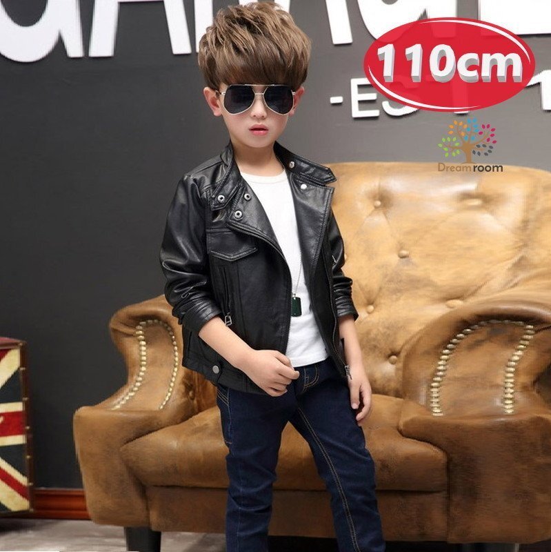 1スタ☆kids boy 2way ライダースジャケット 【ブラック 110cm】 韓国子供服 レザー ハード ライトアウター K-265
