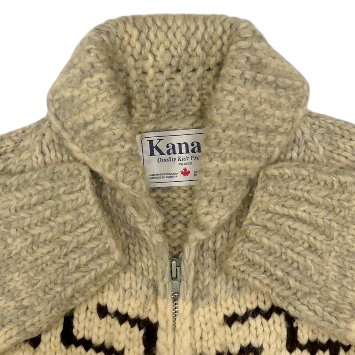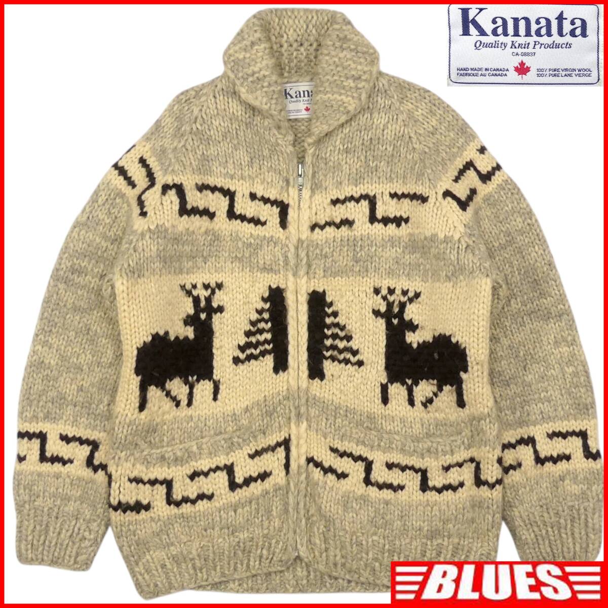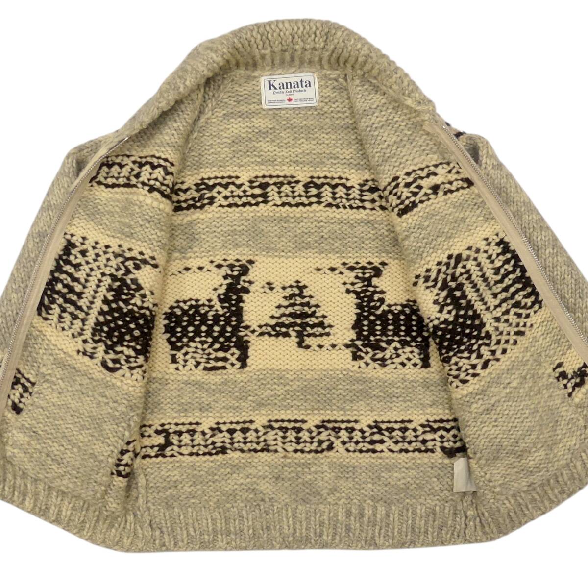即決★カナダ製 KANATA★メンズ XL位 カウチンセーター カナタ 鹿 トナカイグレー 生成り ウール ハンドニット セーター ニット