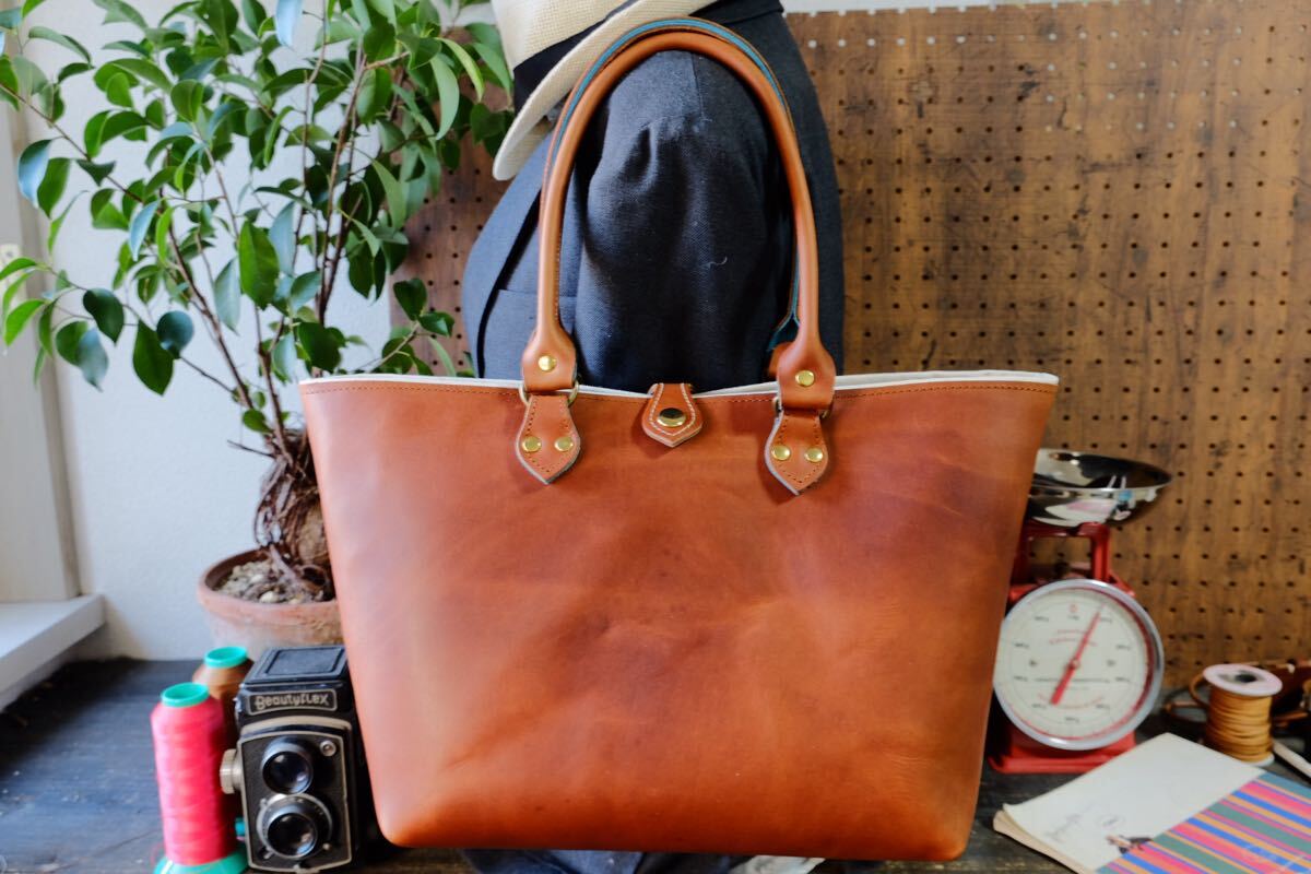 ◆革職人オススメ◇国産霜降りオイルサドルレザー牛革トートバッグ 大容量Lサイズ作家手作り★日本製帆布鞄一点物ハンドメイド