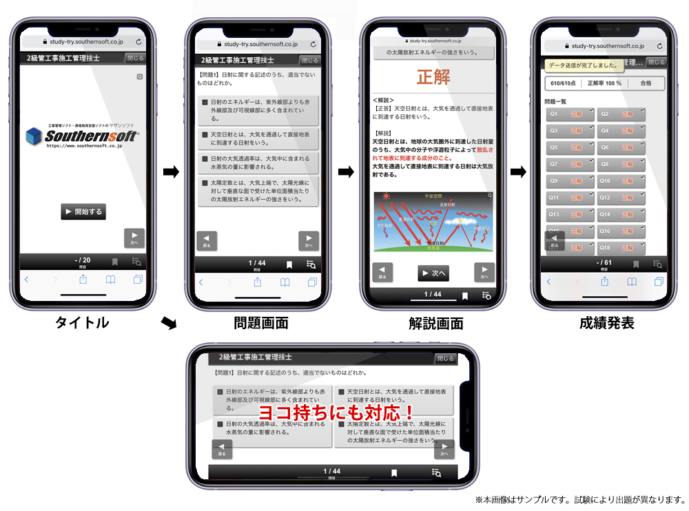 パソコンとスマホのダブル学習により効率よく試験対策をすることができます。