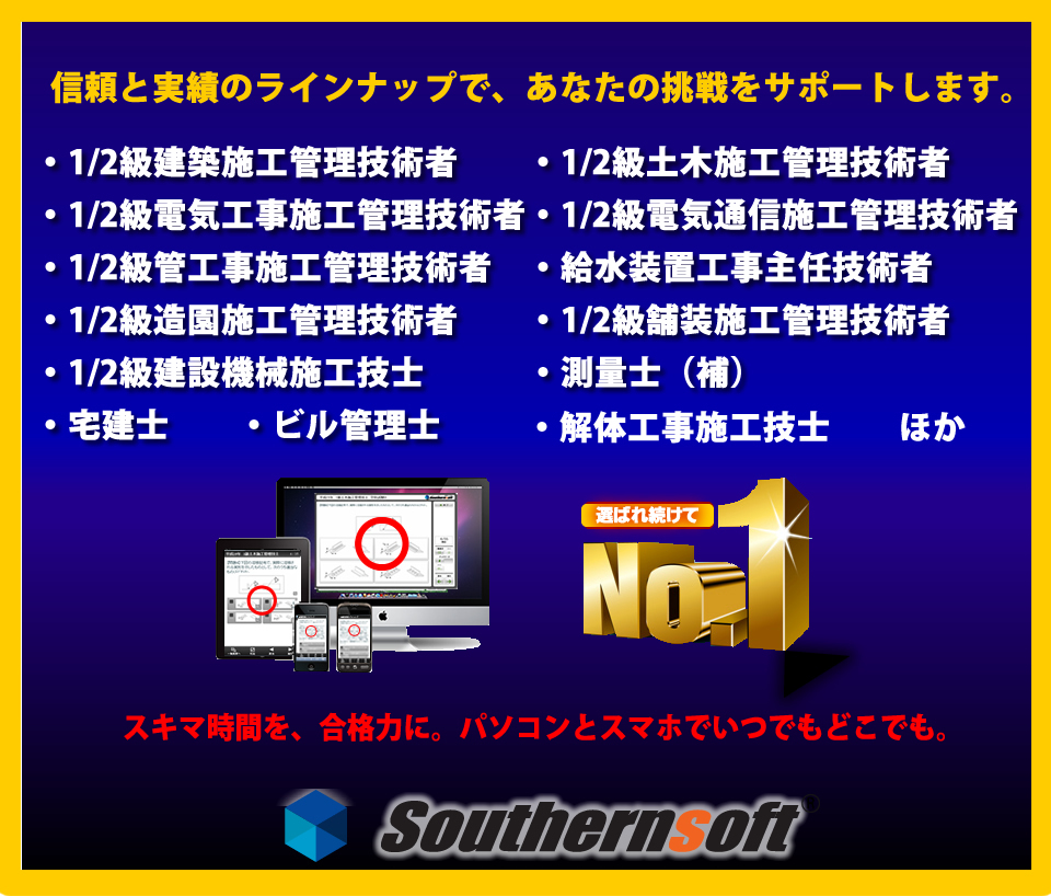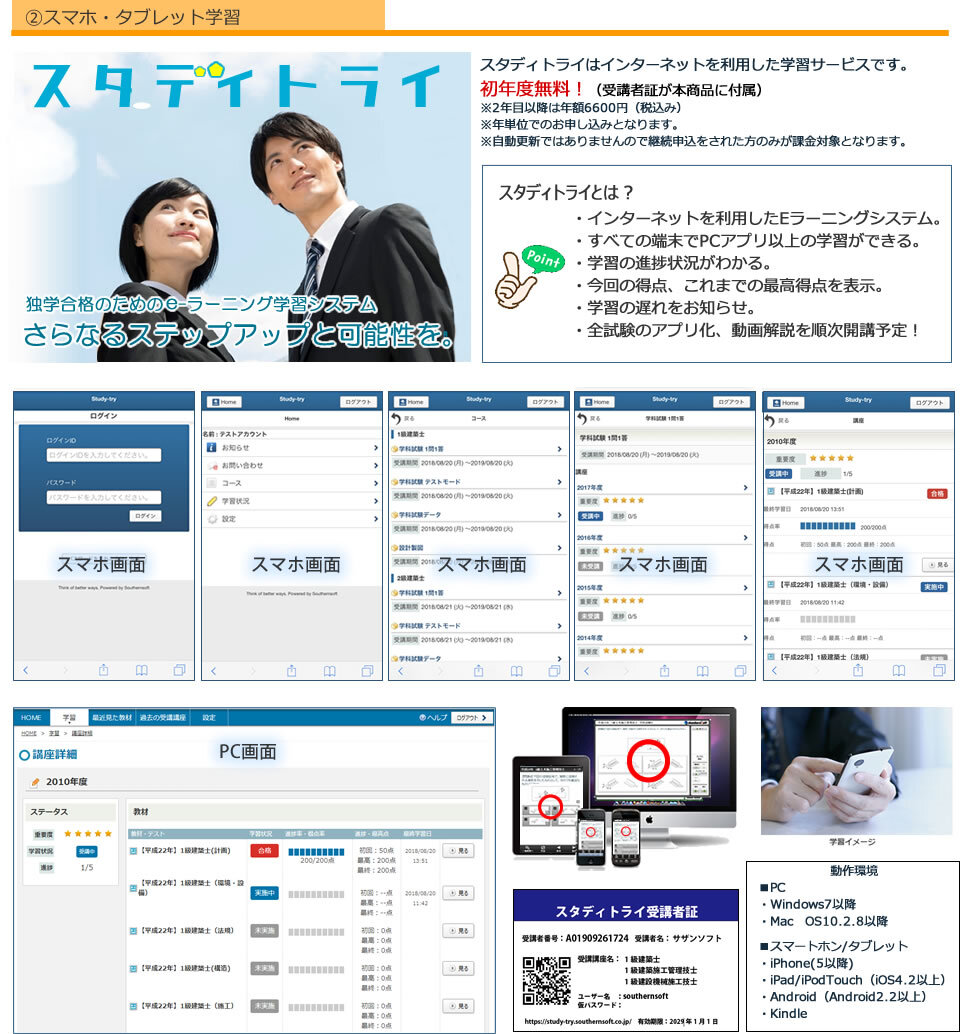 サザンソフト 二級管工事施工管理技士 試験学習セット 1次&2次 令和8年度試験版 スタディトライ1年分付き スマホ学習対応