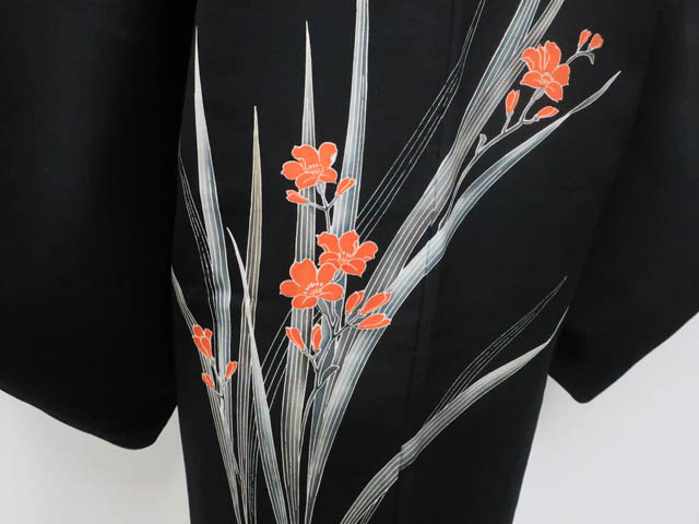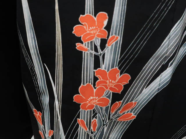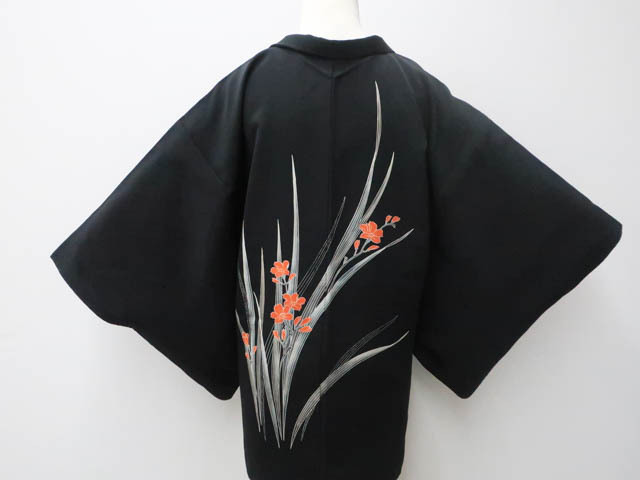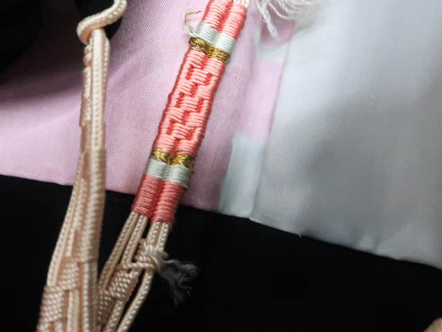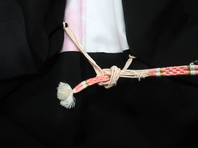 リサイクル商品のため、羽裏に点汚れと紐に糸飛び出しがございますがご着用いただけると存じます。 地色は黒です。 1枚目の画像が近いお色かと思われます。 素材は正絹です。 |
