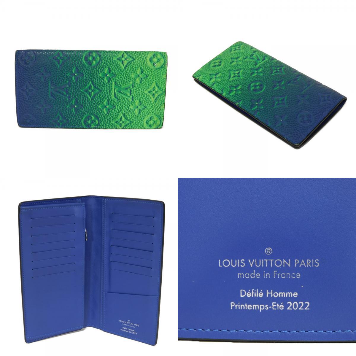 | コメント | ネオンカラーのグラデーショントリヨンレザーにルイヴィトンのモノグラムパターンがエンボス加工された「ポルトフォイユ・ブラザ」カード用スロットも追加された、二つ折り長財布です。 |