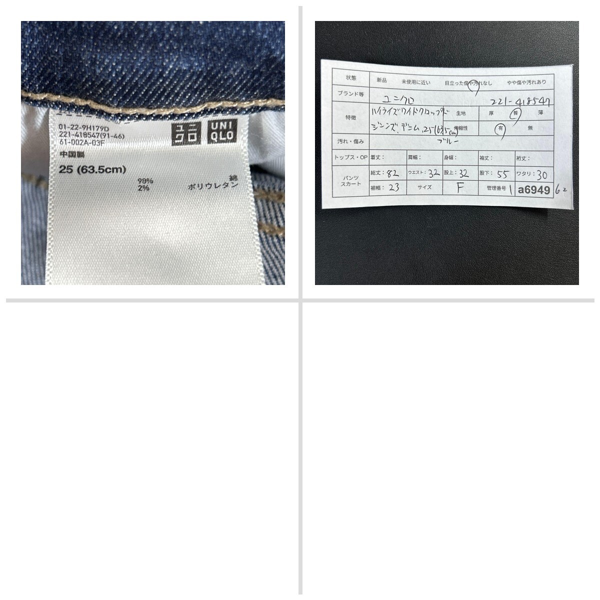 ユニクロ ハイライズワイドクロップドジーンズ デニム 25(63.5cm) 1E39B7