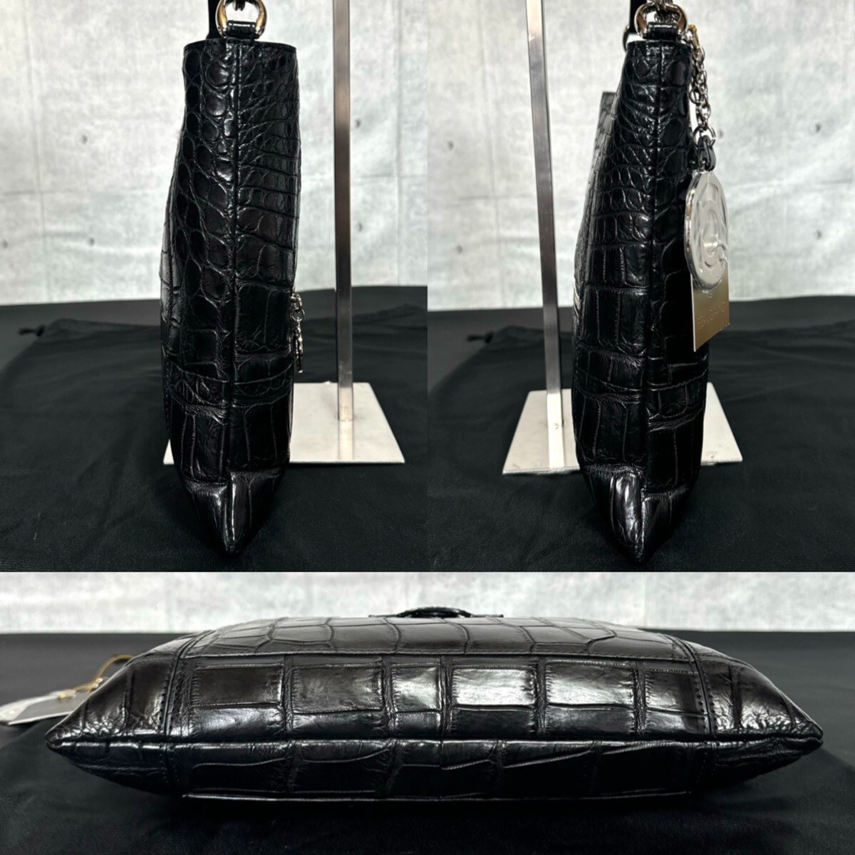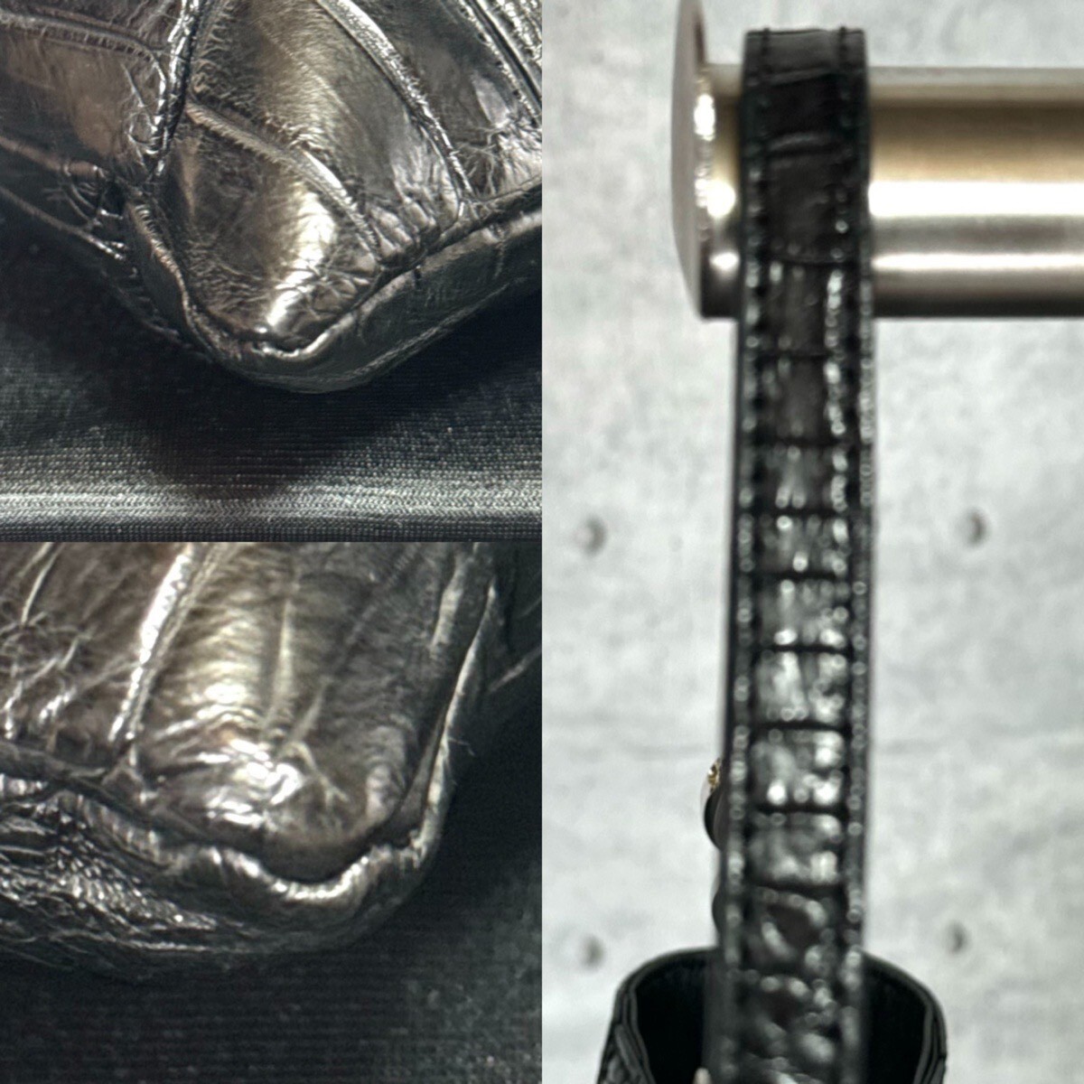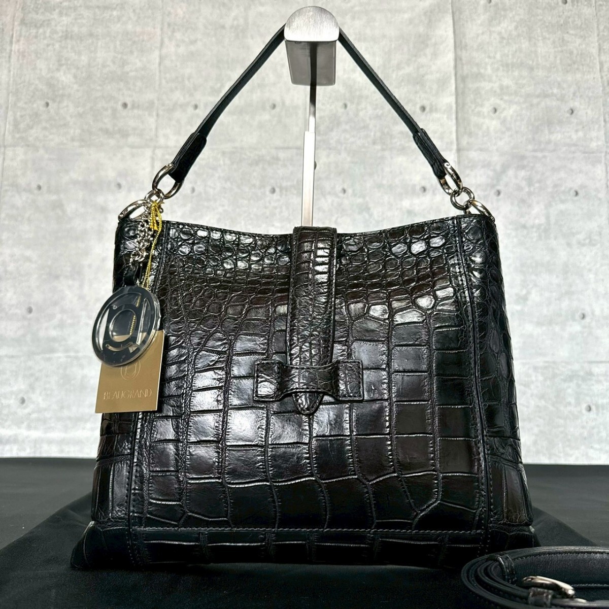新品同様 BEAUGRAND ボーグラン ワニ革 クロコダイル JRA認定 レザー ブラック 黒 本革 シルバー金具 2WAY ハンドバッグ ショルダーバッグ