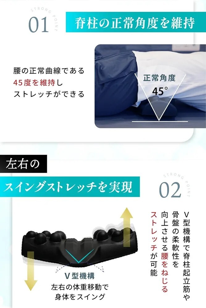 #腰らくピロー腰ひねりストレッチ腰背中マッサージツボ押し