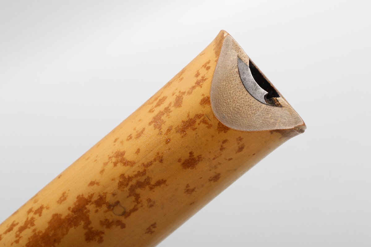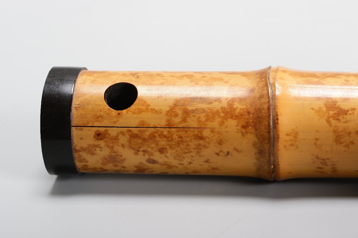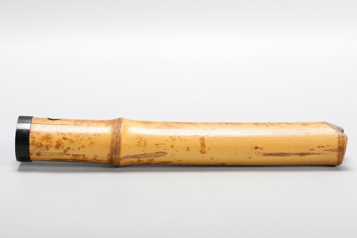 竹身にシミ・スレ・経年変色 目視で大きな割れは見当たりませんが、古い竹製品のため細かなヒビの見落としはご容赦ください