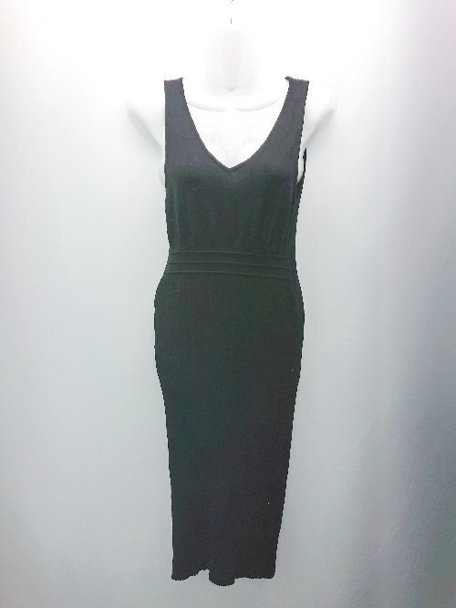 ◇ ROYAL PARTY Vネック ニット素材 細身シルエット タンクトップ型 ロング ワンピース サイズFREE ブラック レディース E