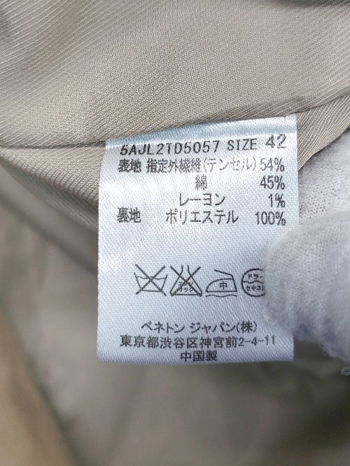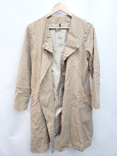 ◇ ◎ BENETTON ベネトン ノーカラー シンプル 長袖 コート サイズ42 ブラウン系 レディース P