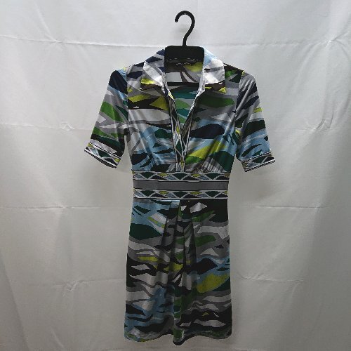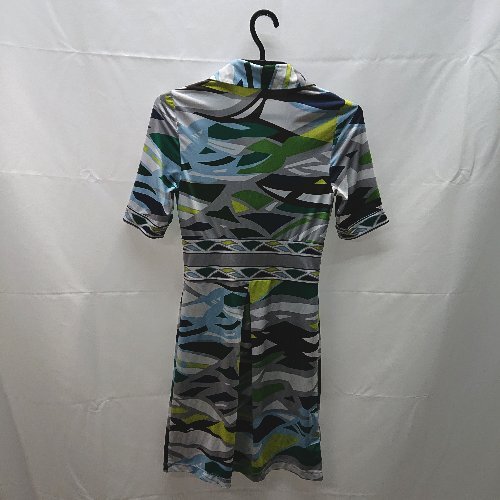 ◇ BCBG MAXAZRIA Vネック ストレッチ 半袖 ひざ丈 ワンピース サイズXS マルチ レディース E