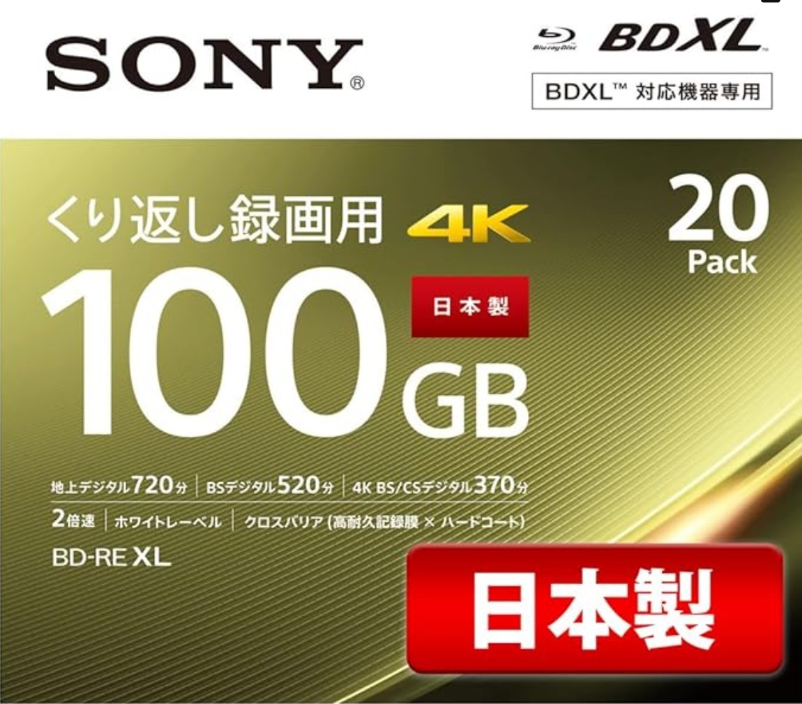 新品未使用 SONY ブルーレイディスク20枚 BD-RE BDXL 100GB 20BNE3VEPS2