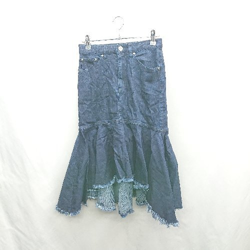 ◇ Θ CECIL McBEE セシルマクビー デニム生地 膝丈 フレア スカート サイズS インディゴブルー レディース E