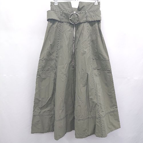 ◇ ⊂ READYAZEL レディーアゼル ロング フレア フロントジッパースカート サイズS カーキー系 レディース E