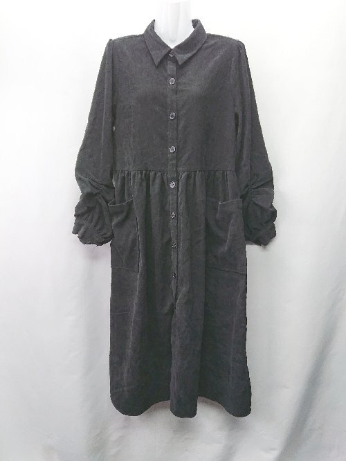 ◇ ⊇ Diosfront コーデュロイ パフスリーブ 長袖 ロング ワンピース サイズM ブラック レディース E