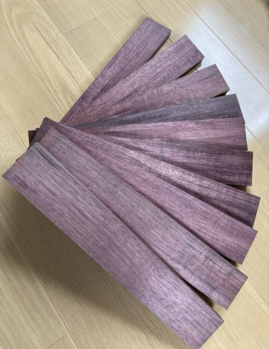 仕様・状態♪品名パープルハート バイオレットウッド10本セット!♪サイズ長さ約300mm×13mm×30mmの20本セットです。♪注意事項*少しの寸法違いはご了承ください。♪状態多少の・キズ・反り・欠け箇所等はご了承ください。