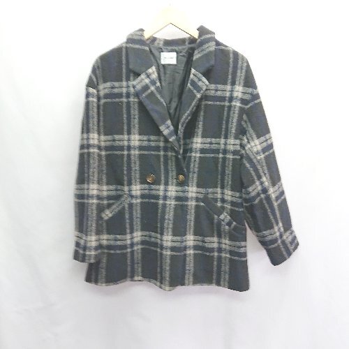 ■ vis-`a-vis チェック柄 長袖 ジャケット サイズF ブラック ホワイト ブルー レディース E