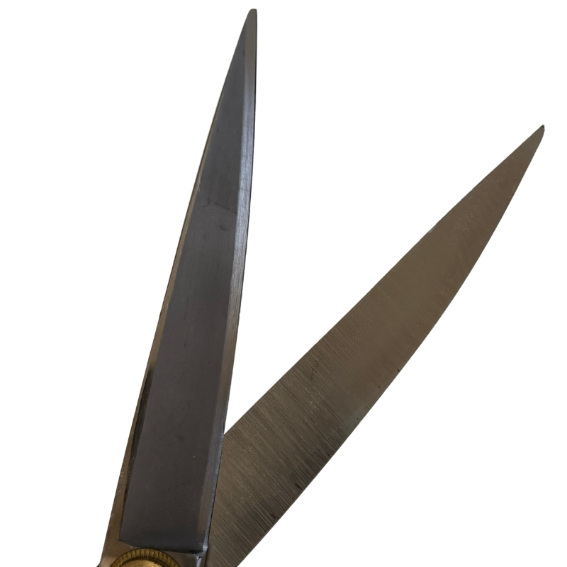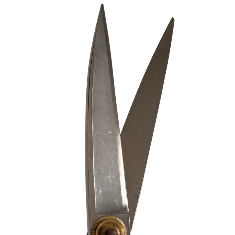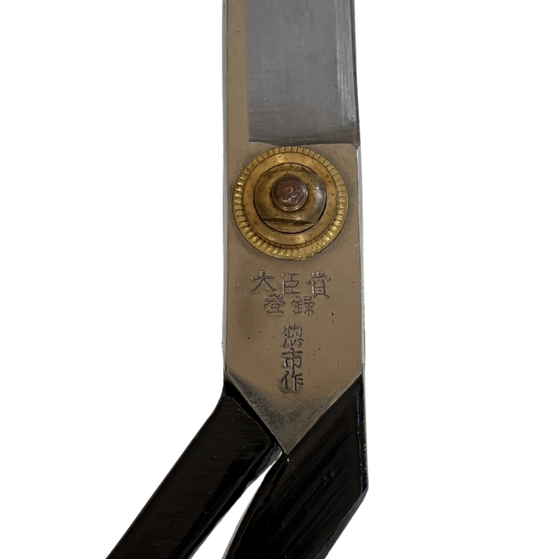 大臣賞受賞の鋏職人・惣市による、特選高級羅紗切鋏です。刃物・鋏・包丁などの世界では、大臣賞は展示会・共進会の最優秀賞に近い位置付けになり、本品も刃の厚み・重量バランス・安定感があります。比較的良い状態ですが、画像と動画でご確認ください。※撮影補助に使用した木製立ては付きません。