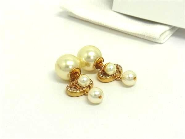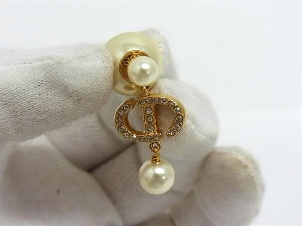 1円 ■極美品■ ChristianDior クリスチャンディオール ロゴモチーフ パール ラインストーン ピアス レディース ゴールド系 BQ2802