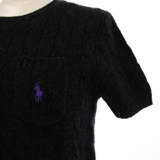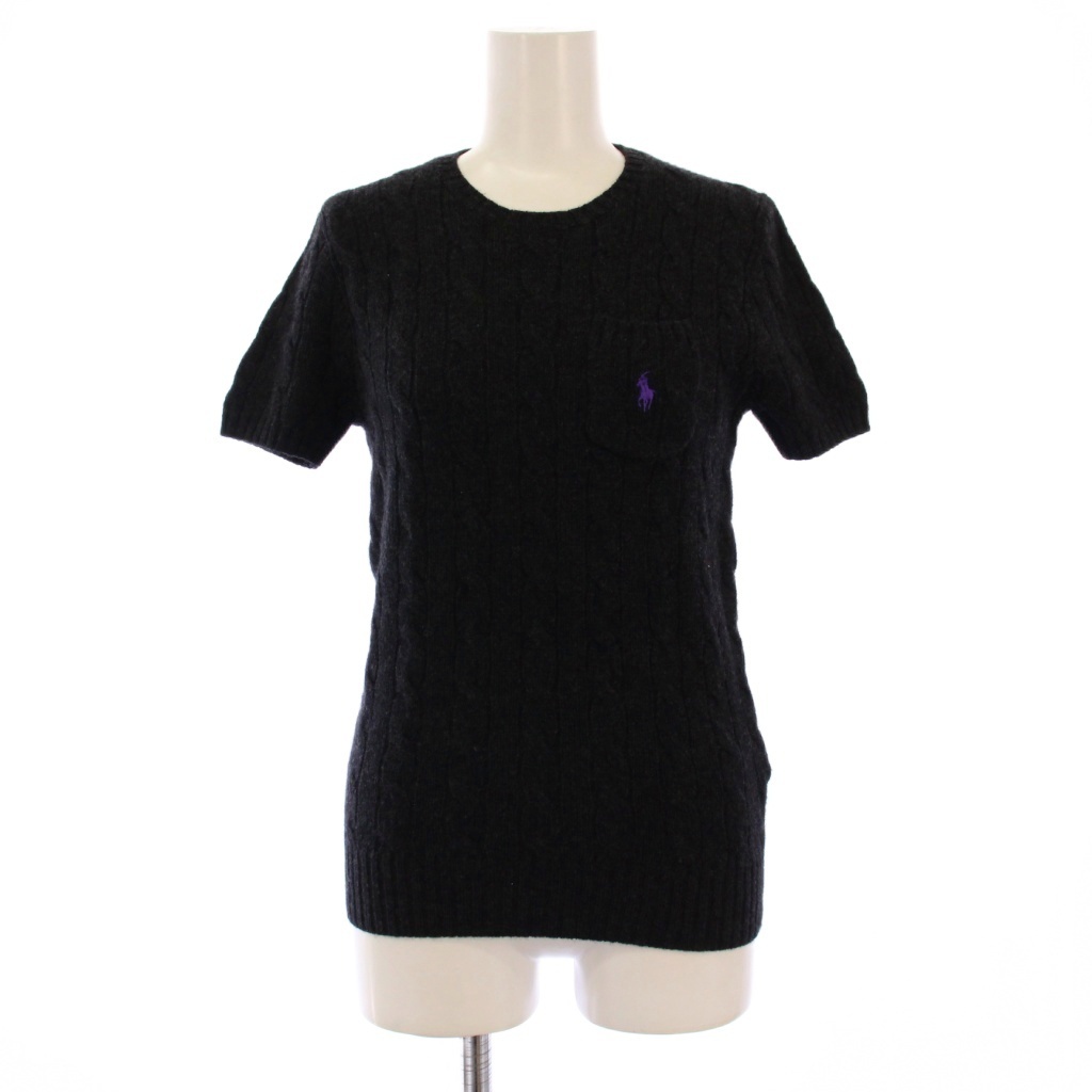ポロ ラルフローレン POLO RALPH LAUREN ニット セーター 半袖 クルーネック ロゴ刺繍 XS チャコールグレー レディース