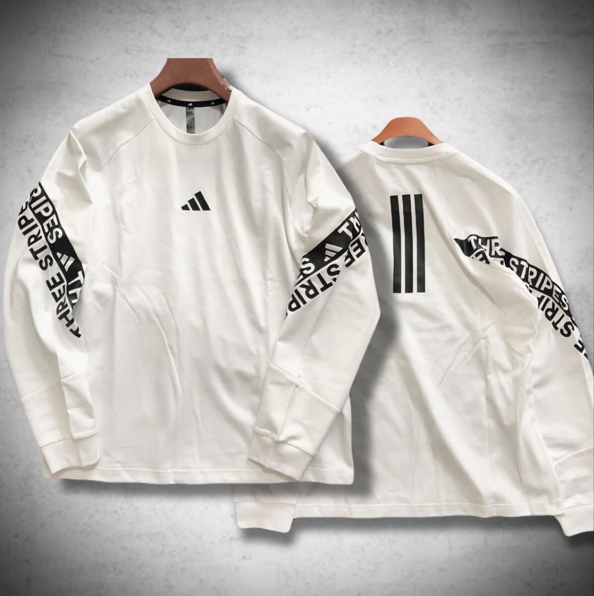 ●スリーストライプスでアディダスらしさを大胆に主張した、ルーズフィットの長袖トップス。