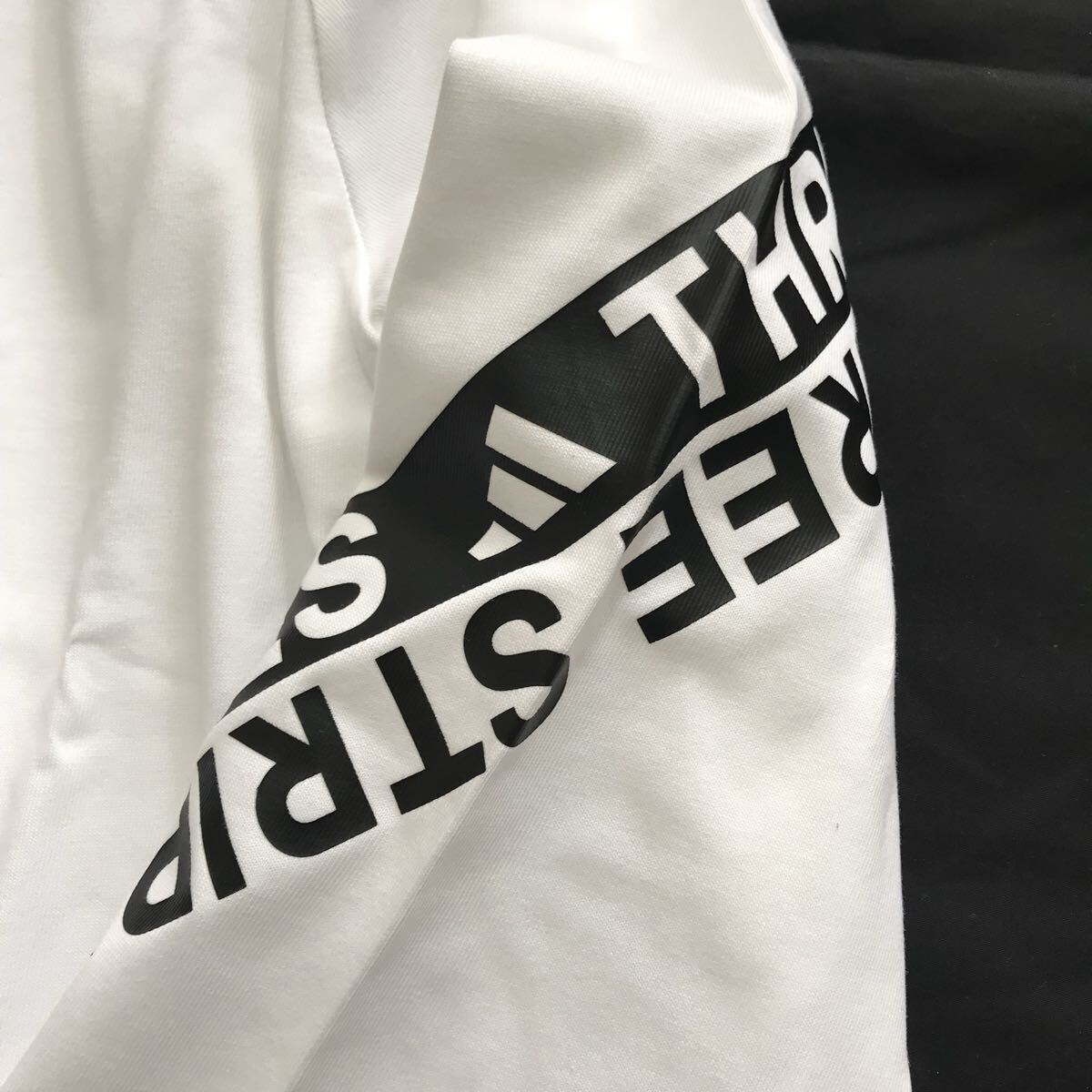 ●袖周りの大胆なスリーストライプスのグラフィックが、スタイルを引き立てる。