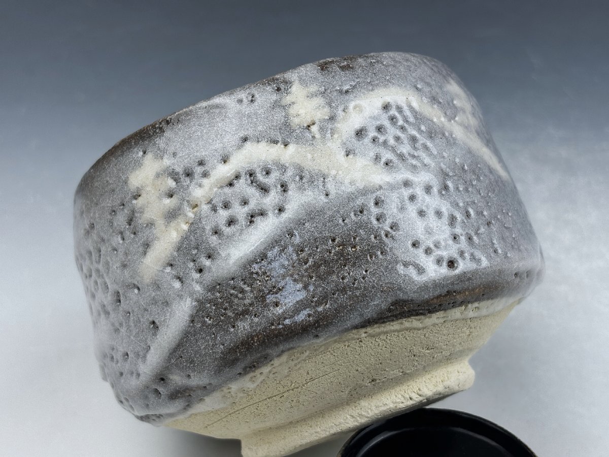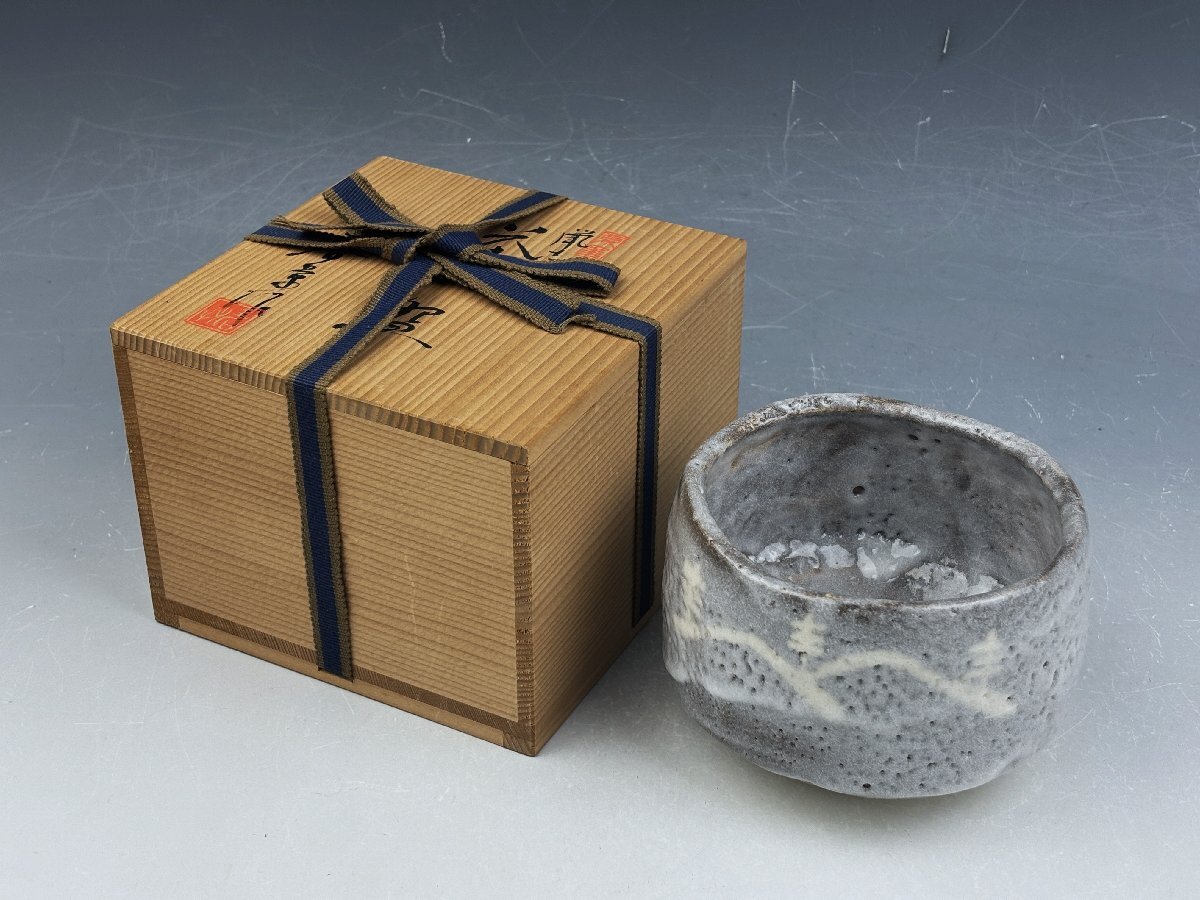 瀬戸赤津焼 志野焼 中島春草 遠山図 鼠志野茶碗 抹茶碗 無傷 共箱 茶器 茶道具 和食器 万古焼 古陶磁器 古美術骨董品 SIE206