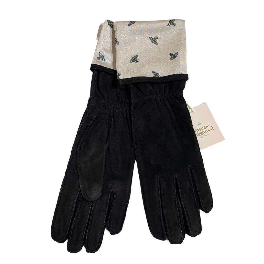 ヴィヴィアン ウエストウッド 手袋 ロング スウェード レザー グローブ 未使用 タグ付き レディース 黒 ブラック 20cm オーブ アームカバー