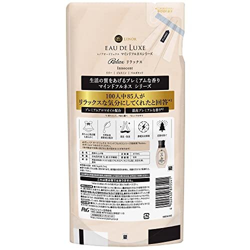 | 商品名 | レノアオードリュクス プレミアム柔軟剤 マインドフルネスシリーズ リラックス Innocent 詰め替え | ||