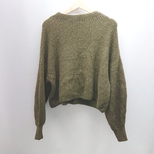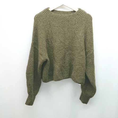 ◇ SENCE OF PLACE ラウンドネック クロップド丈 ボリューム袖 カジュアル 長袖 ニット サイズfF カーキ レディース E