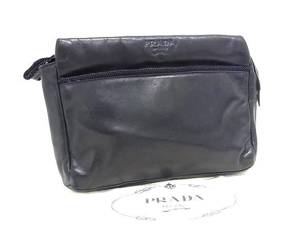 1円 PRADA プラダ レザー クラッチバッグ セカンドバッグ ポーチ マルチケース 小物入れ メンズ レディース ブラック系 FT3555