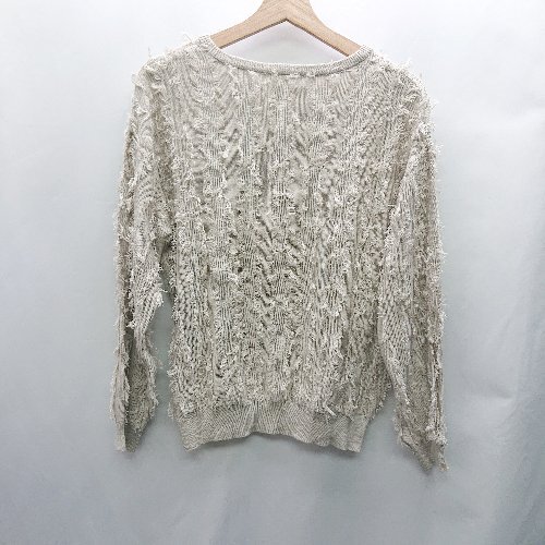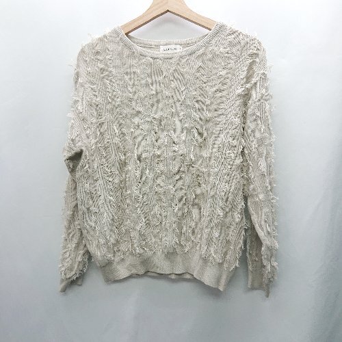 ◇ ⊇ LEPSIM レプシィム フリンジ加工 長袖 ニット セーター サイズF ベージュ系 レディース E