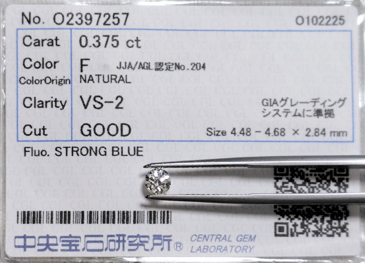 【12/6★安値〜】天然ダイヤモンド ルース 0.375ct F VS2 鑑別 CGL│B2455vt【0.3ct】ダイヤ diamond