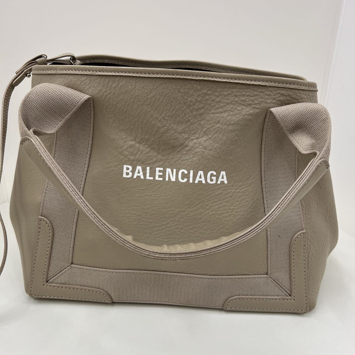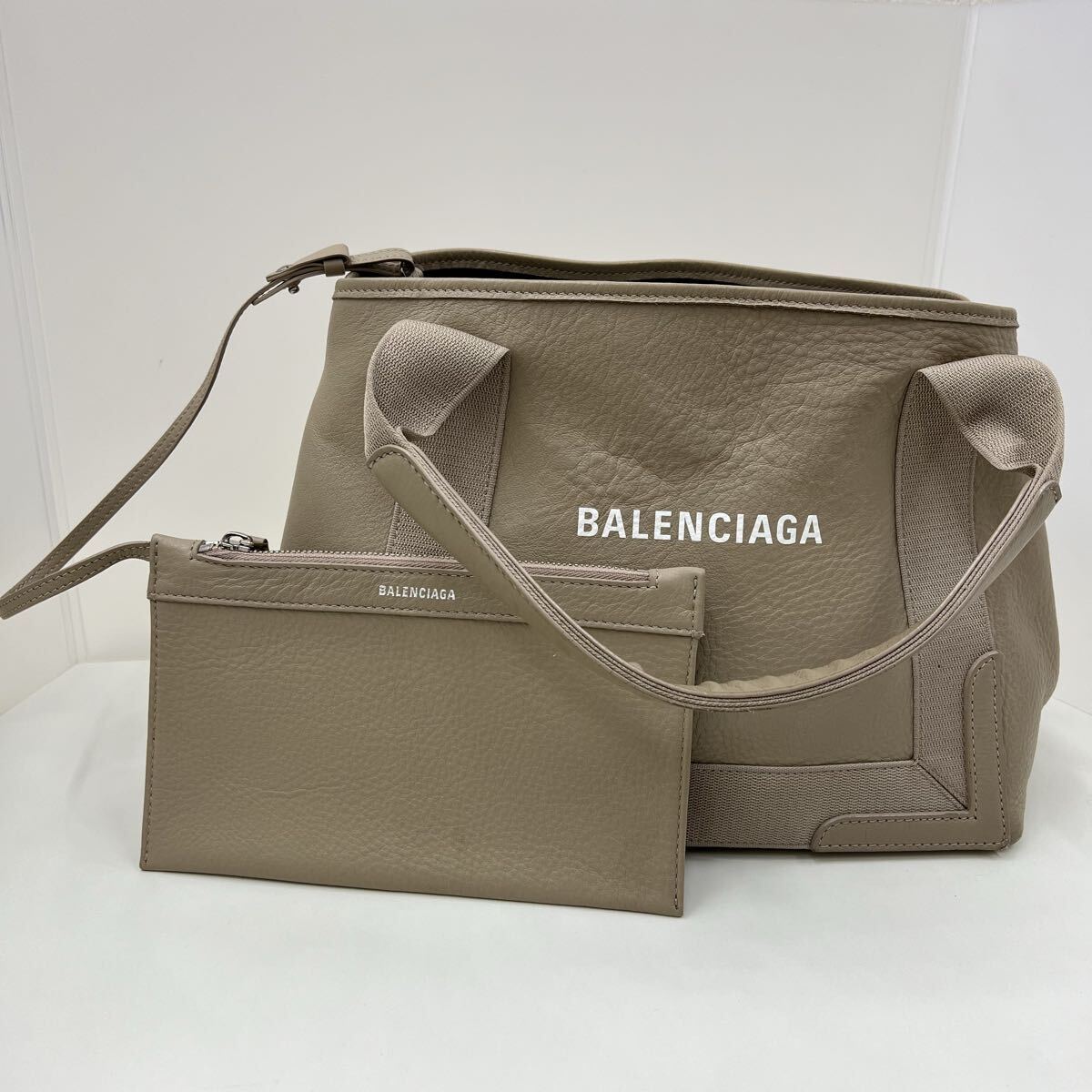 BALENCIAGA バレンシアガ 2990 ネイビーカバス ベージュ レザー ハンドバッグ ポーチ トートバッグ バッグ ロゴ アクセサリー S