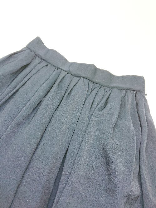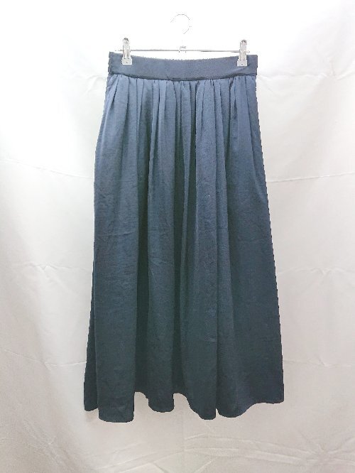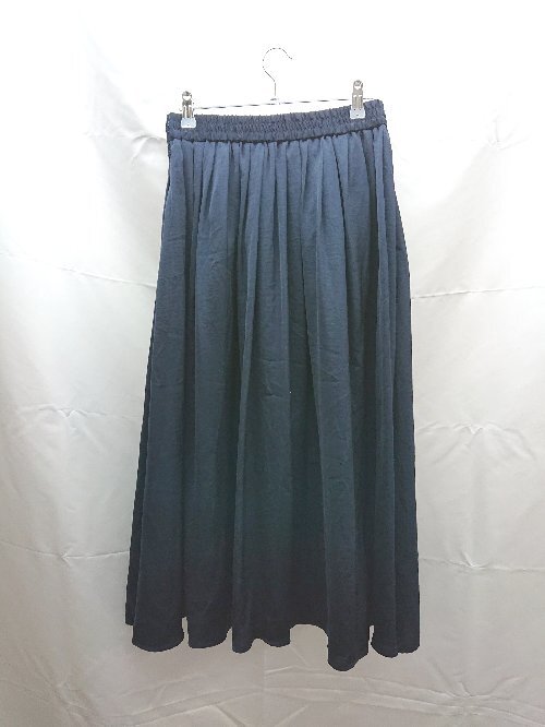 ◇ nano universe ウェストゴム シンプル 無地 ギャザー ミドル フレア スカート 横M+ 縦S ネイビー レディース E