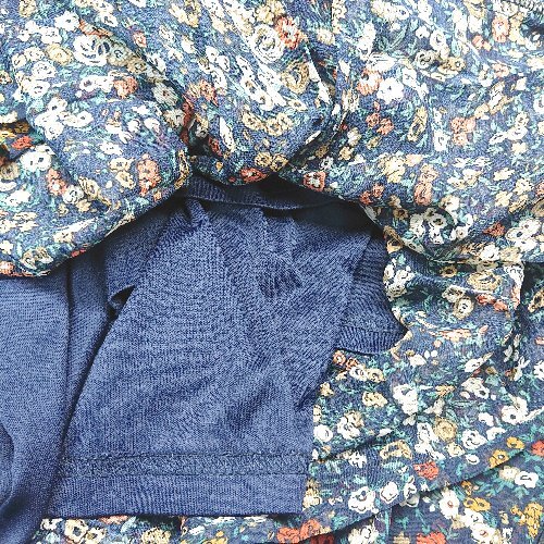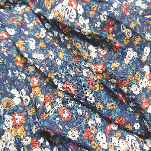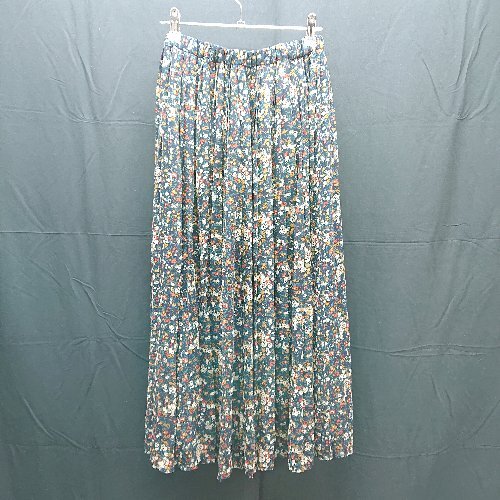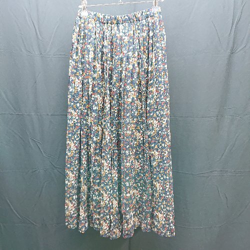 ◇ MAJESTIC LEGON ウェストゴム シフォン フラワープリント ロング プリーツ スカート Mサイズ ネイビー レディース E
