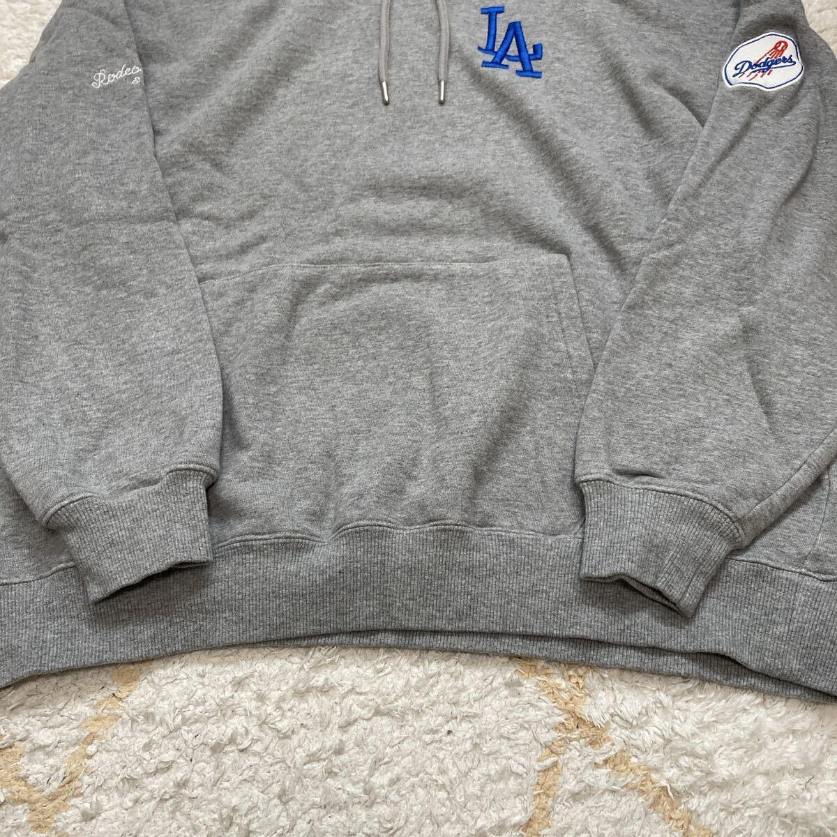 RODEO CROWNS WIDE BOWL ロデオクラウンズ ドジャース フーディー スウェット プルパーカー グレー 裏起毛 Lサイズ