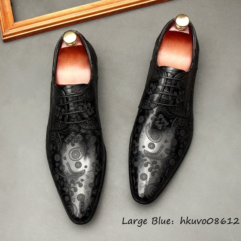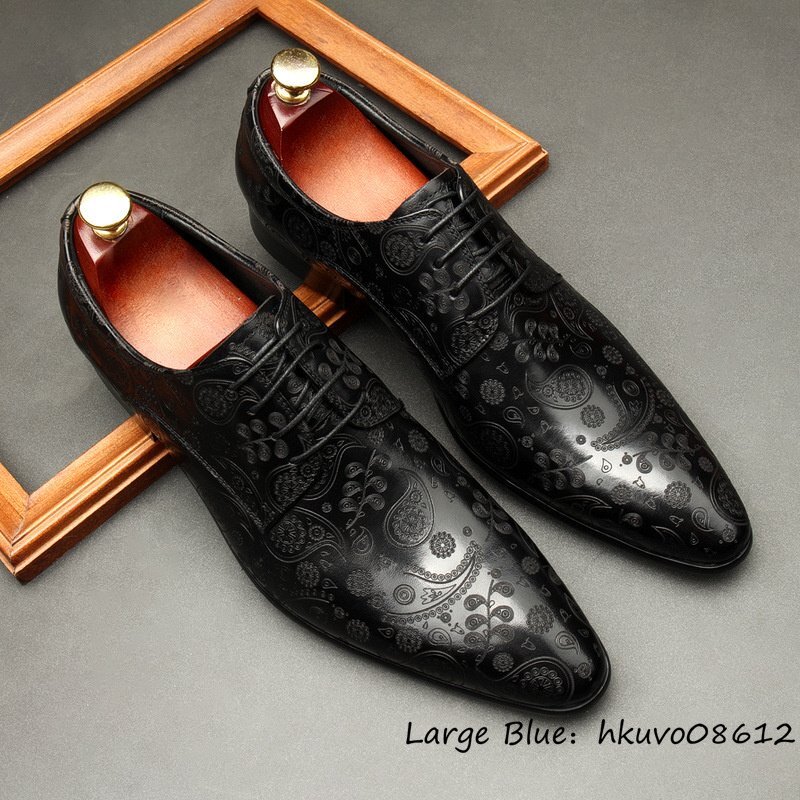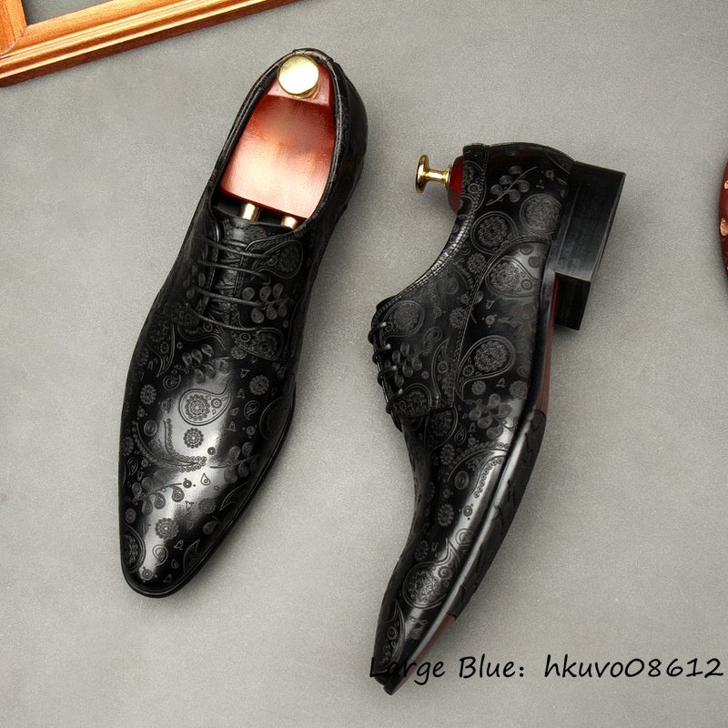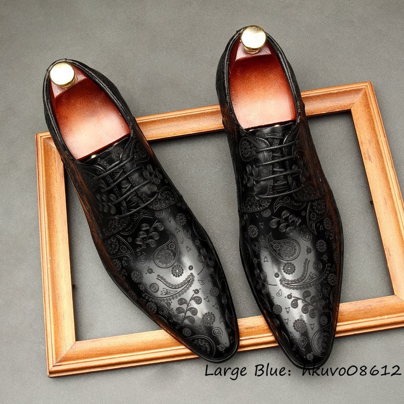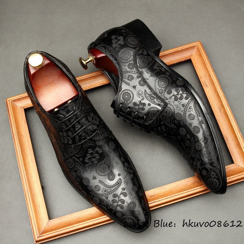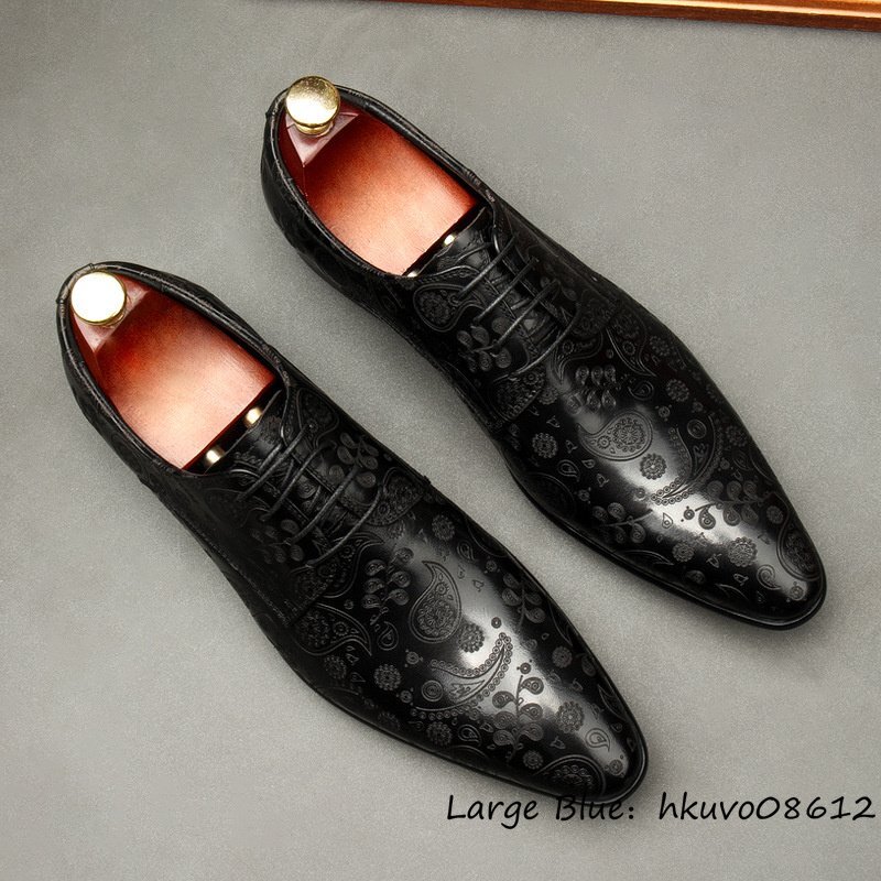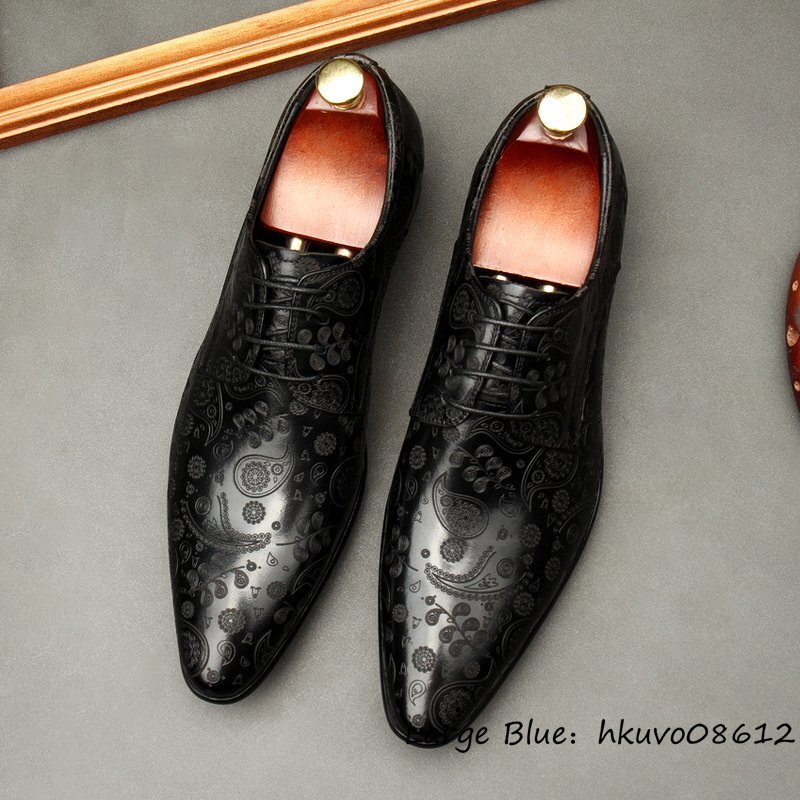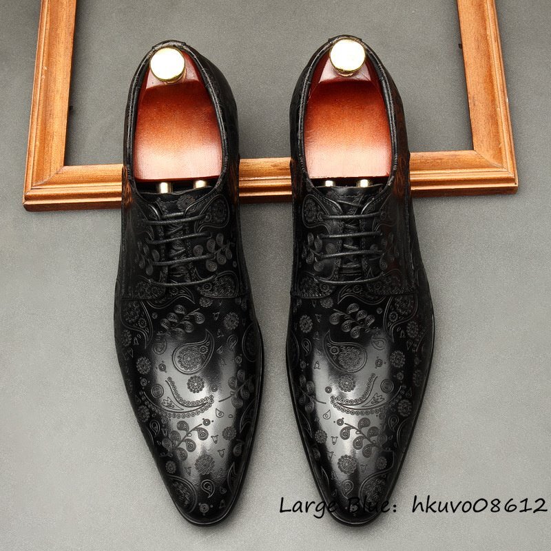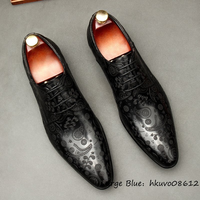 最高級◆定価11万超 本革 レザーシューズ メンズ 職人手作り ビジネスシューズ 超希少 牛革 総柄 革靴 紳士靴 冠婚葬祭 フォーマル 24.5cm