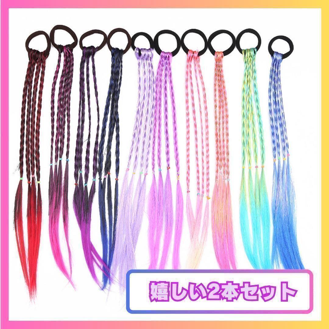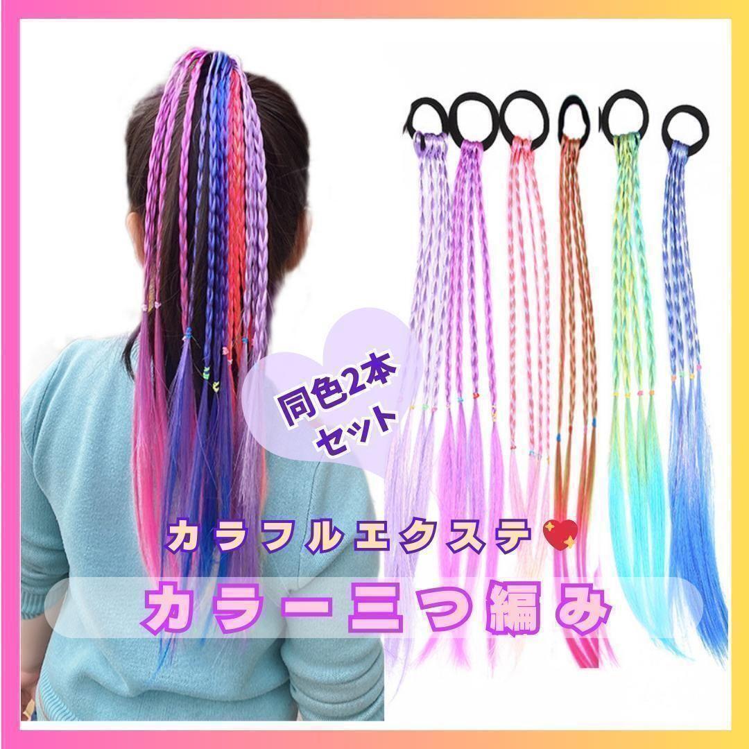 ゴムのついた三つ編み済みでカラー豊富でポニーテールのアクセントになります。