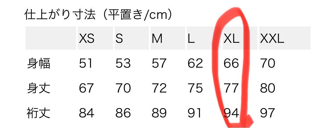 表記サイズ:XL