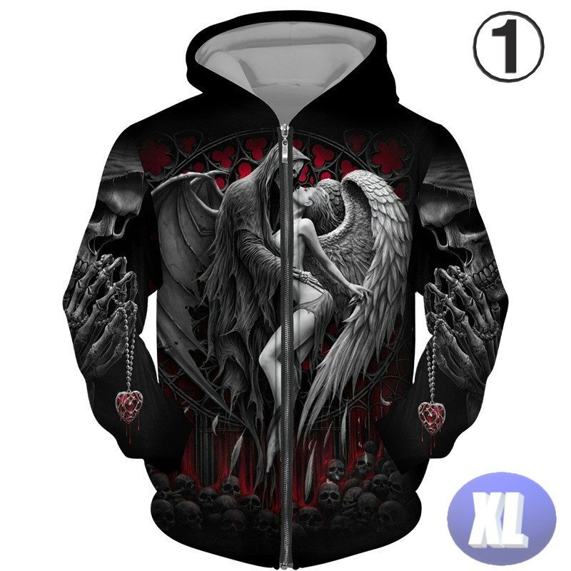 フード付き ドクロパーカー ジップアップ カラー1 XL トレーナー アウター 防寒 n717
