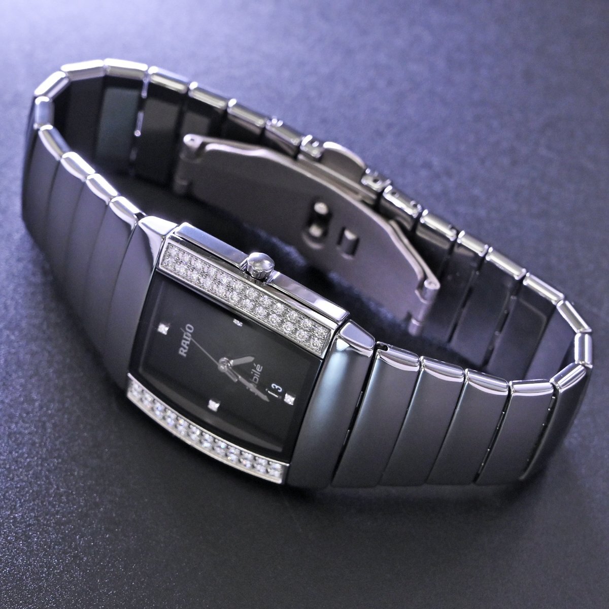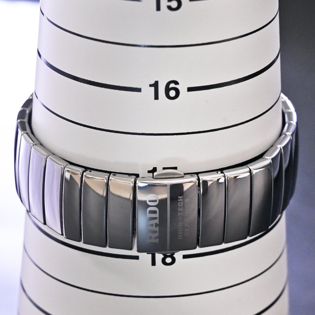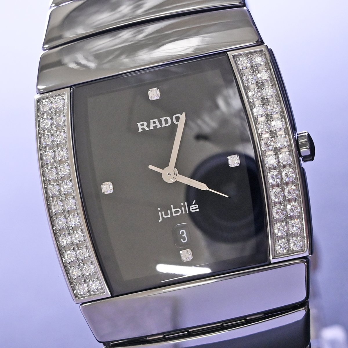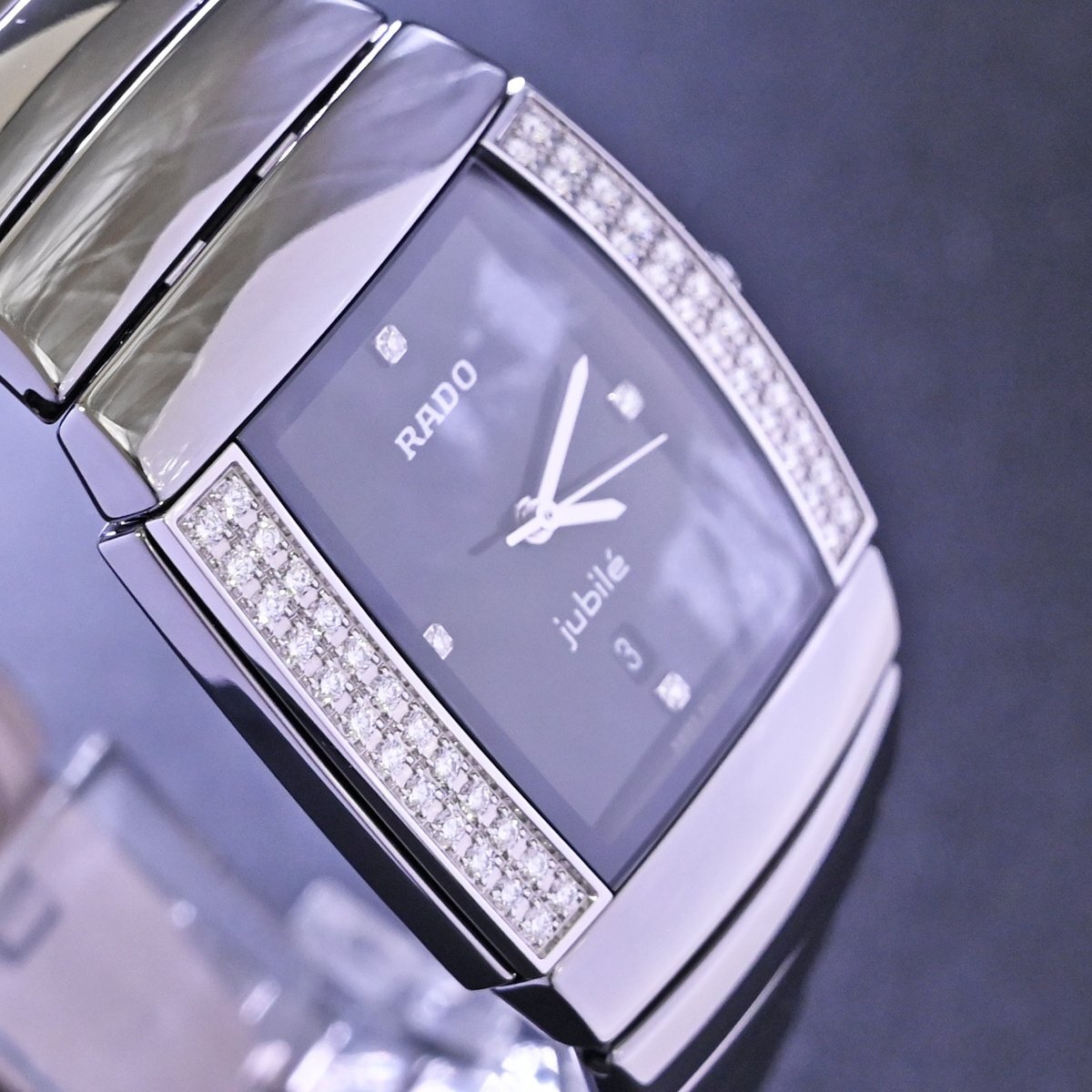 ラドーの純正ダイヤベゼル 4Pダイヤ文字盤 ジュビリーです。 メゾン伝統のセラミック素材を使用したハイテクセラミックタイムピースコレクション。 純正セッティングのダイヤベゼルとインデックスがゴージャスな印象を与えてくれます。 ケースとブレスが一体型なので、アクセサリー感覚でもお楽しみ頂ける一本です。 市場流通量の圧倒的に少ないモデルなのでお探しの方も非常に多いかと思います。 ※基本動作確認済。 |