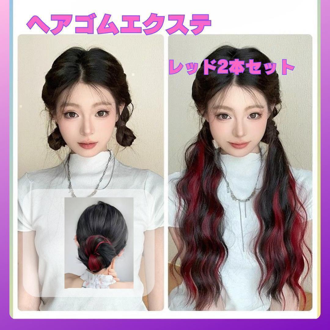 ヘアゴム付きカラーポイントエクステ 2本セット レッド