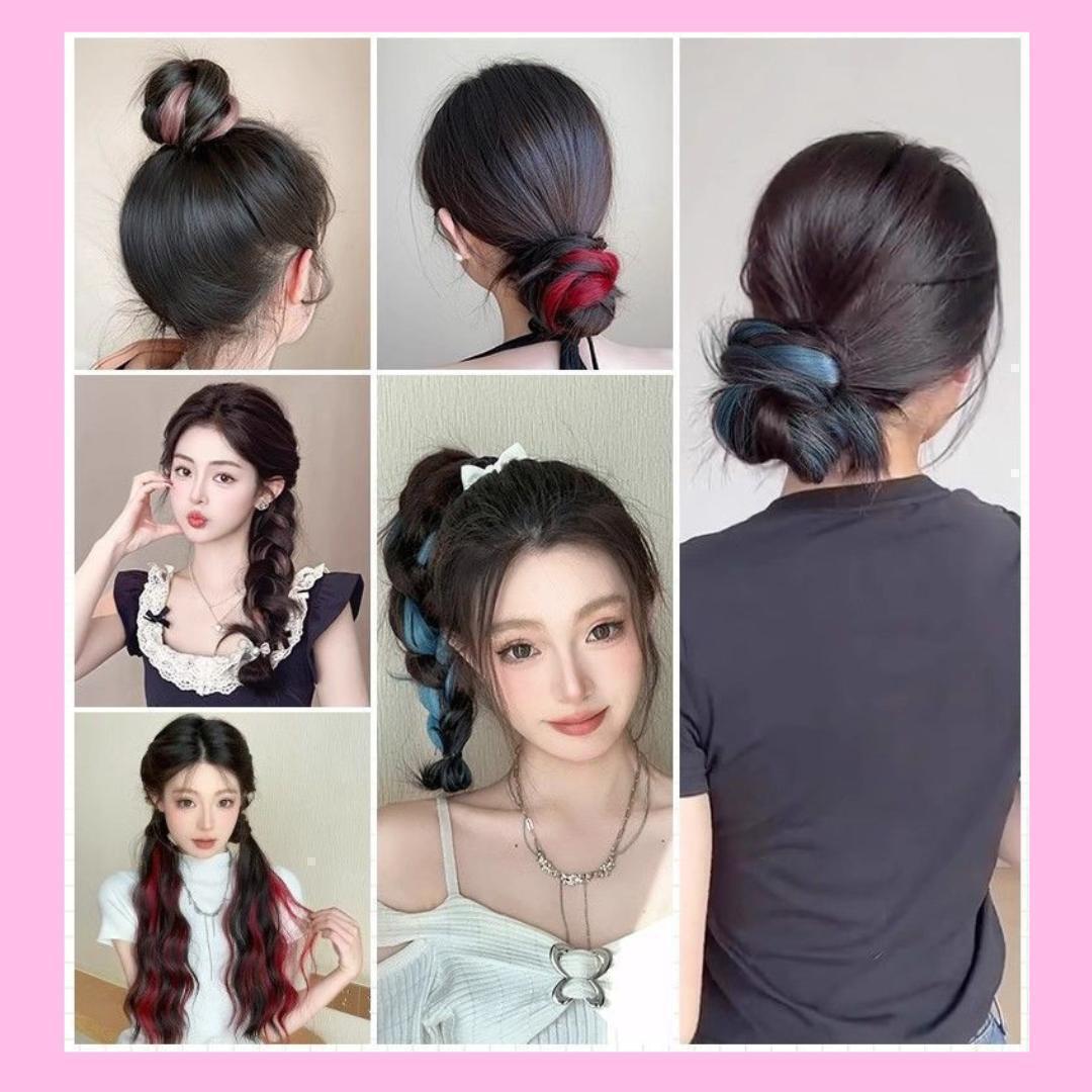 ポニーテールやお団子にくるっと巻き付けるだけで、簡単にカラーアレンジが完成。