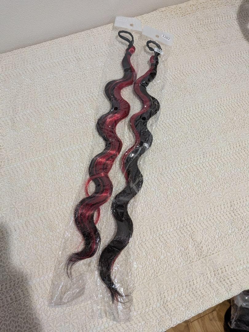 ヘアゴム付きカラーエクステ 2本セットレッド メッシュカラーエクステ 1202 D96386