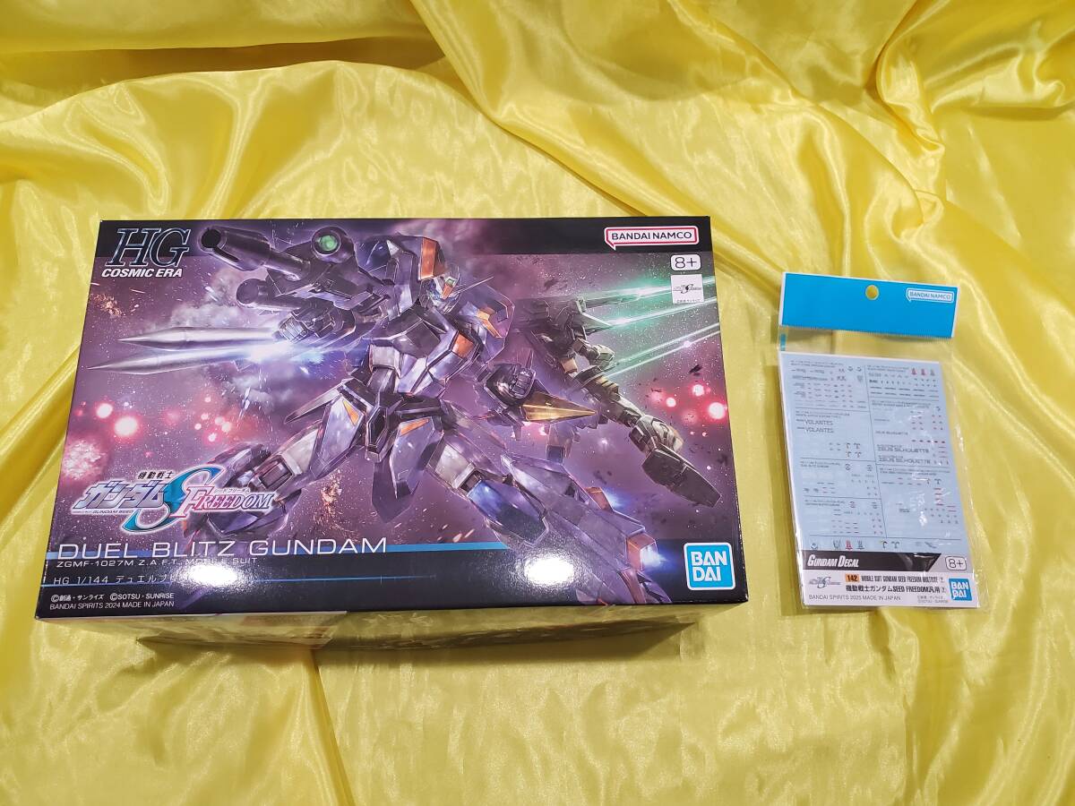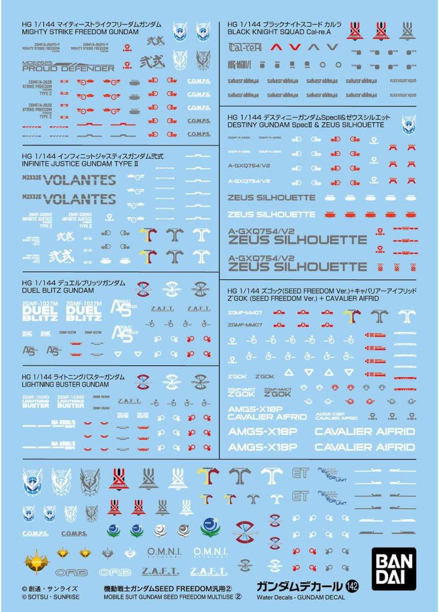 バンダイのプラモデル、「プレミアムバンダイ限定 HG 1/144 ミーティアユニット/デュエルブリッツガンダム/ガンダムデカールNo.142 機動戦士ガンダムSEED FREEDOM汎用2 水転写式デカール」です。