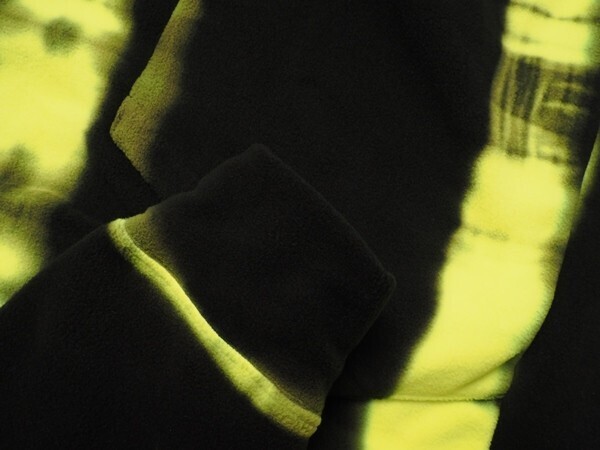 ボリューム感のあるマイクロフリースを用いたフーディーです。染めによるランダムな色柄がユニークな逸品です。