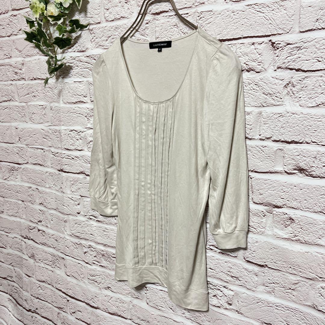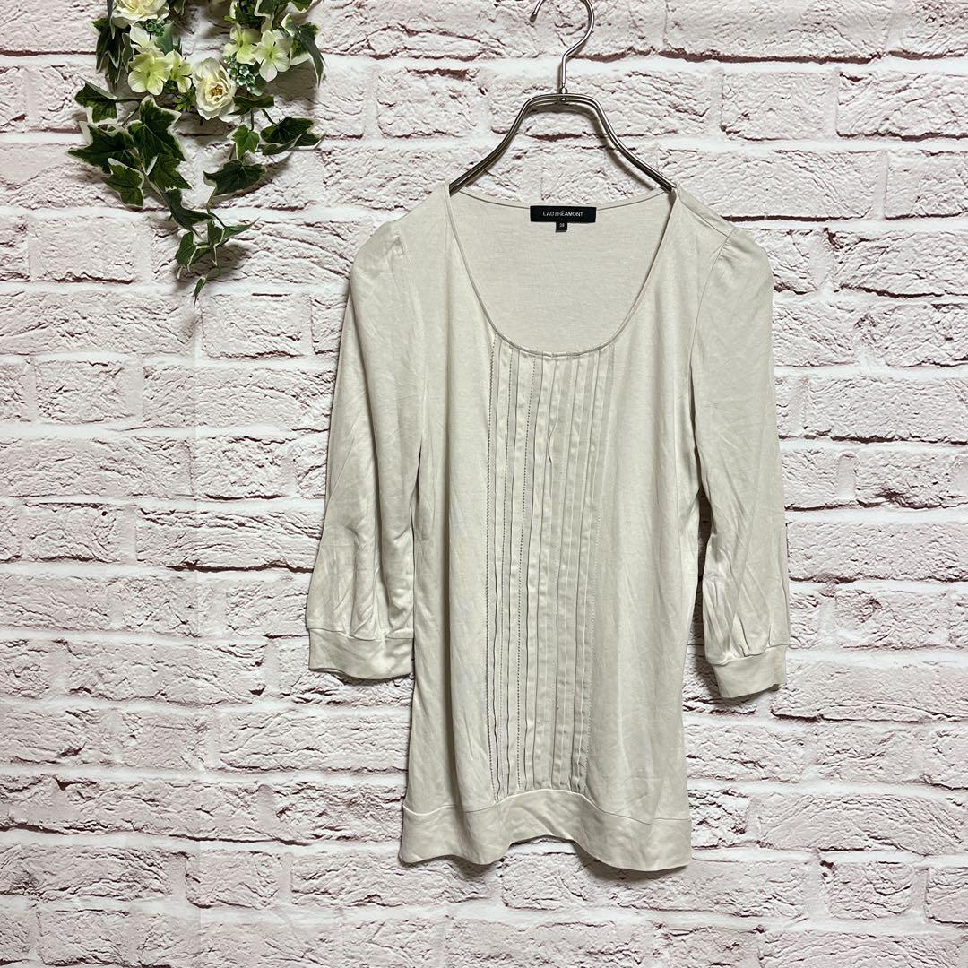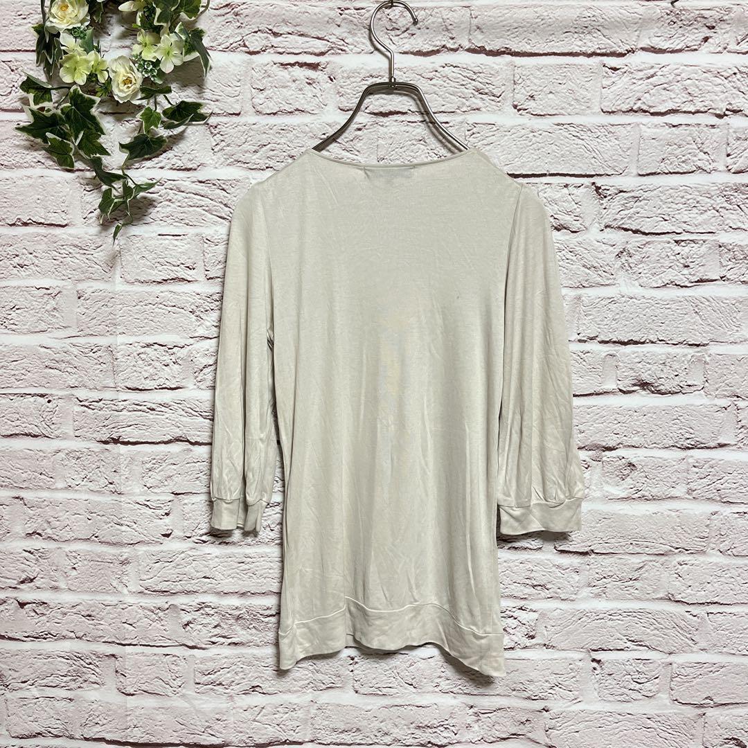 ロートレアモン Uネック 七分袖カットソー 38(M)なめらか素材 アイボリー 6F44BD