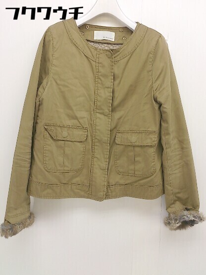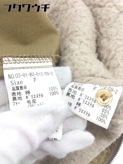 ◇ ◎ bulle de savon ライナー付 ラビットファー 長袖 ノーカラー ジャケット サイズF ベージュ レディース